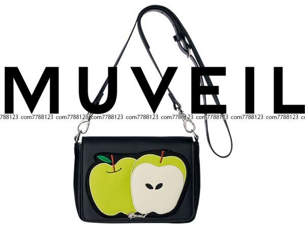 > 未使用4.6万◎MUVEIL◎リンゴ 2wayショルダー バッグ レザー ブラック ミュベール 本革 アップル クラッチバッグ りんご