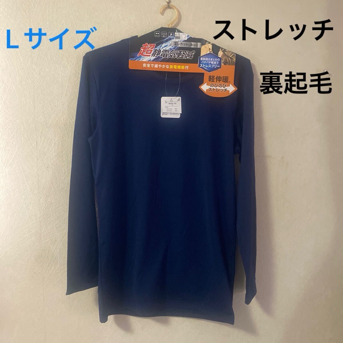 - 紳士 肌着 メンズ インナー 長袖 丸首 シャツ L 裏起毛 ストレッチ 男性用 ネイビー系
