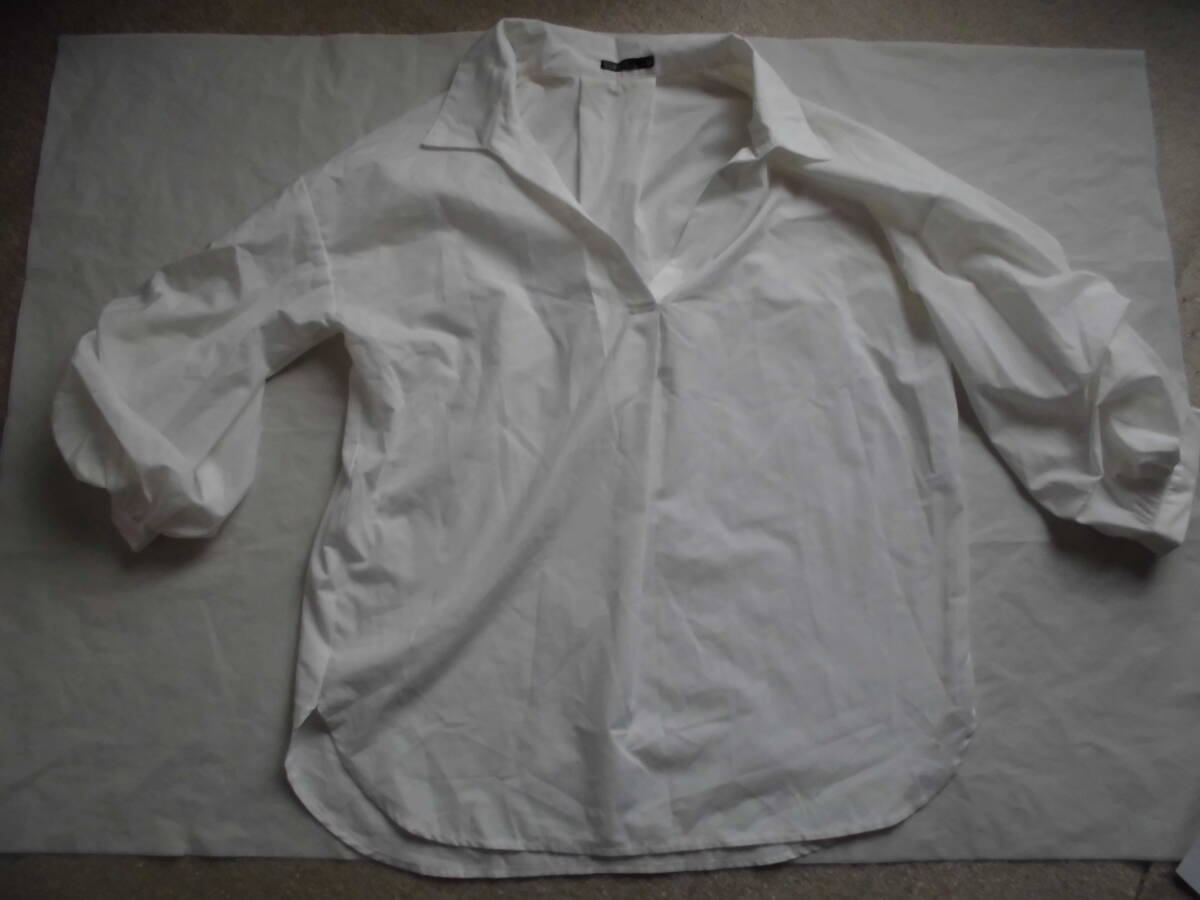 - SUREVE★ホワイト(白)のゆったりシャツ★袖が個性的で可愛い★Vネック★8分袖位★Mサイズ★少し汚れありですが★