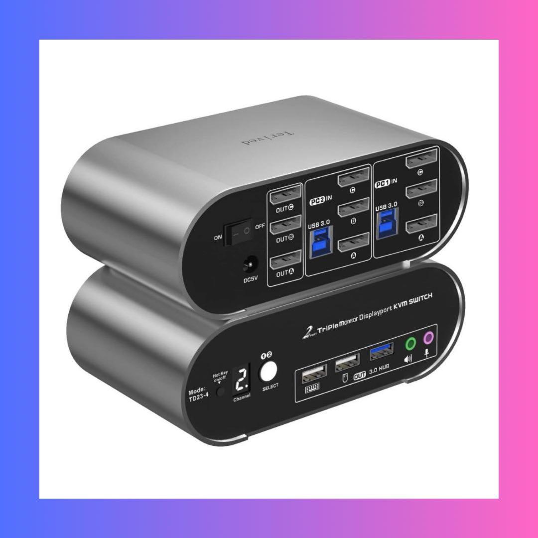 > 2ポート DP USB 3.0 KVMスイッチ トリプルモニター TD23-4 アクチュエータタイププッシュボタン 国際保護レーティングIP54
