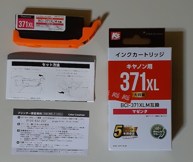 - 6259 未使用 CANON BCI-371XLM互換 プリンタ PIXUS インクカートリッジ マゼンタ 大容量 KSD-C371XLM ColorCreation K'sデンキ