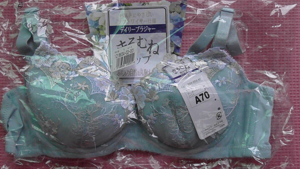 > 新品 A70 ソフトワイヤーブラジャー 水色 まるむねカップ 花柄刺繍 自然な丸胸メイク 背中ホック 女性 下着 バスト80 ベルメゾン 送料無料