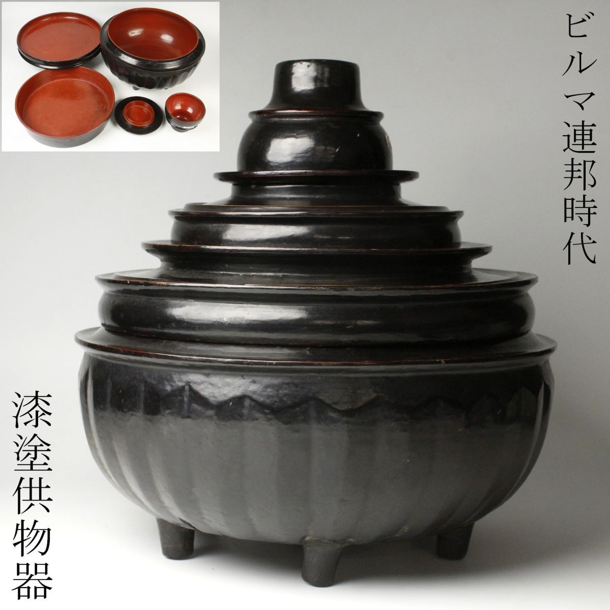 - 【LIG】ミャンマー ビルマ連邦時代 漆塗 供物器 寺院仏具 食籠 時代古玩 [.WE]25.3