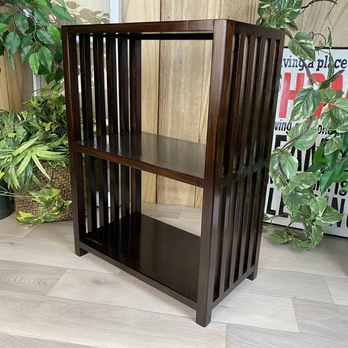 - 送料無料☆アジアンエスニックモダン☆木製ウッドラックシェルフ二段☆本棚☆飾り棚☆収納和室、インテリア、和室、洋室、格子