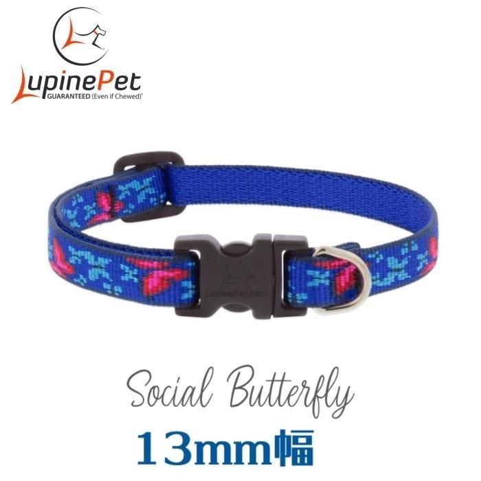 - ソーシャルバタフライ柄 小型犬向けワンタッチ首輪 13mm幅 Sサイズ 20-30cm LUPINE アメリカ製 軽量 丈夫 ルパイン