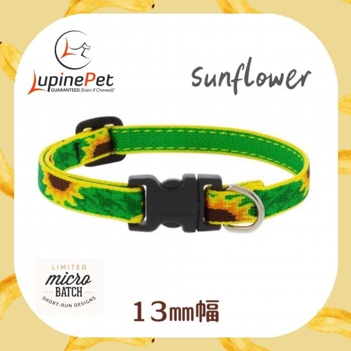 > サンフラワー柄 小型犬向けワンタッチ首輪 13mm幅 XSサイズ 15-22cm LUPINE アメリカ製 軽量 丈夫 ルパイン