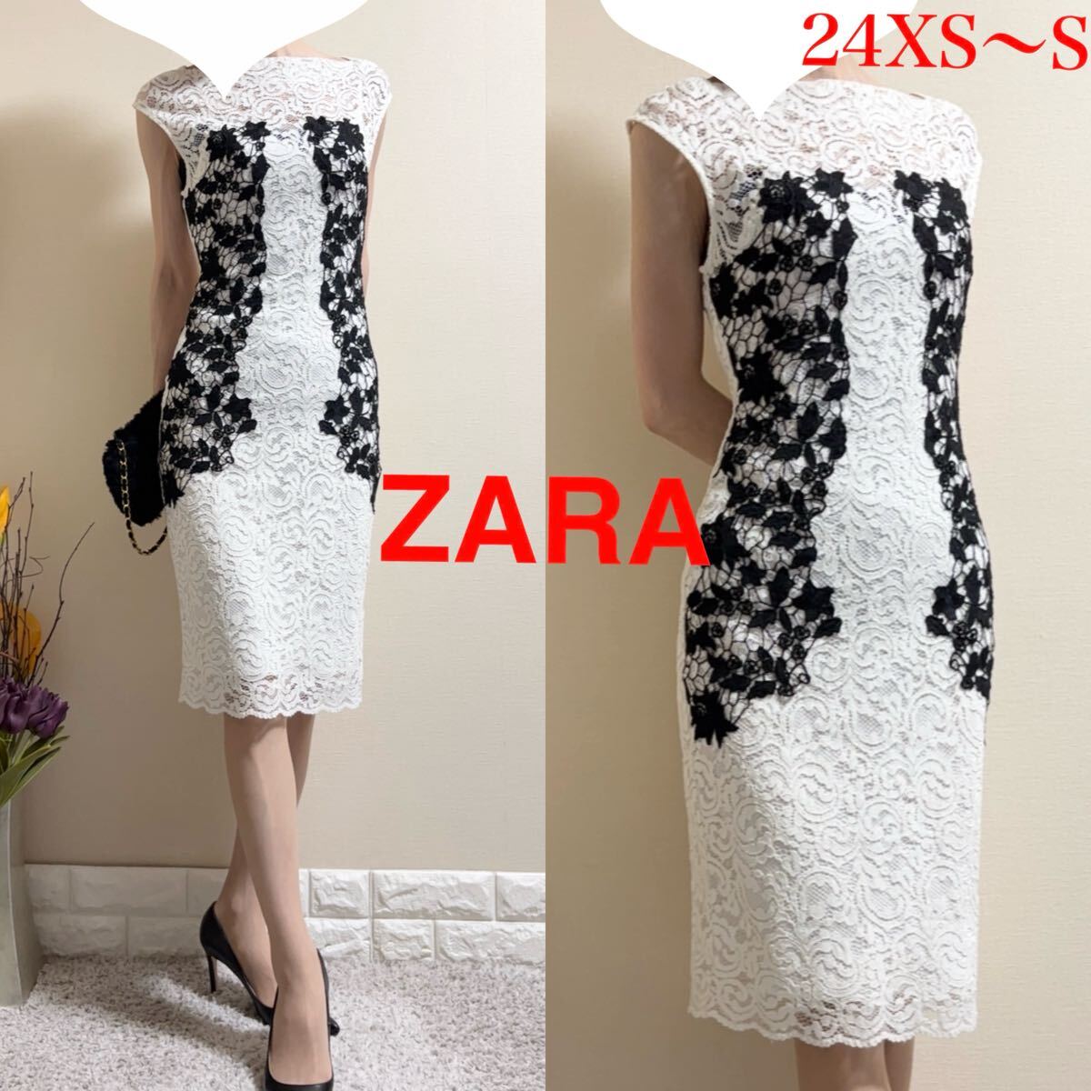 - ZARA ザラ フラワー 配色 レース ワンピース 24 XS〜S 白 ドレス