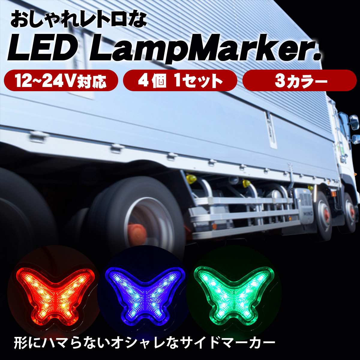 > マーカー ライト 蝶々 デコトラ シグナル 車 トラック ランプ アクセサリー レトロ イルミネーション バス 電飾 バック グリーン 4個