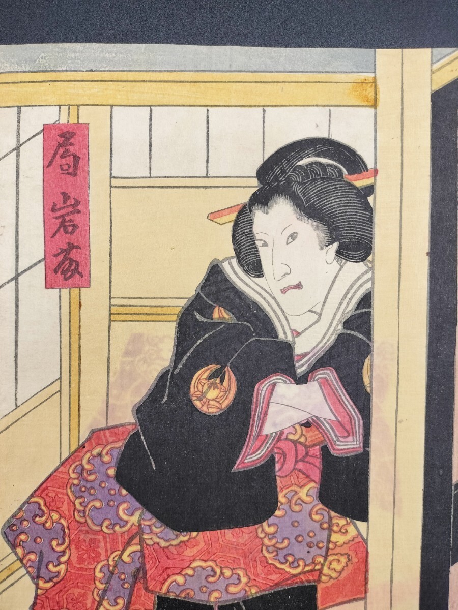 - 江戸期/真作 歌川豊国「局岩ふじ」本物浮世絵木版画 役者絵 歌舞伎絵 芝居絵 錦絵 大判