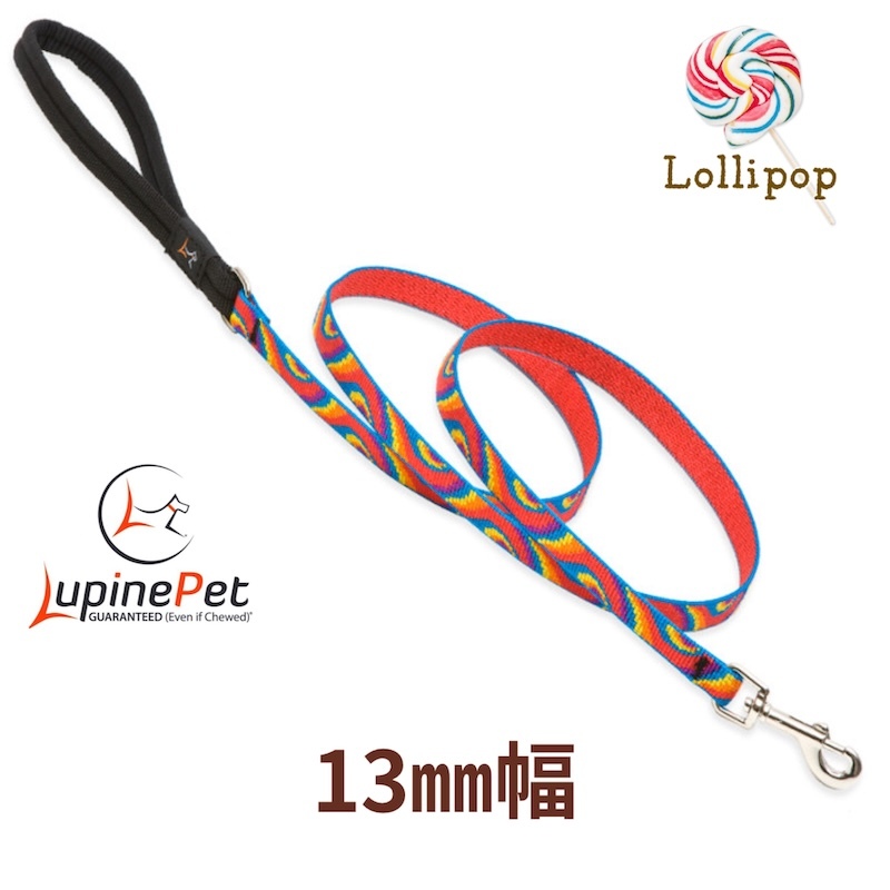 - ロリポップ柄 13mm幅120cmリード パッド付き LUPINE アメリカ製 軽量 丈夫 小型犬向け ルパイン