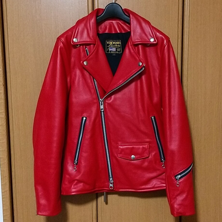 > 定価19万円 VANSON バンソン ダブルライダースジャケット 赤 レッド 牛革 36 Ron herman別注 ネイキッドカウハイド グレインレザー schott
