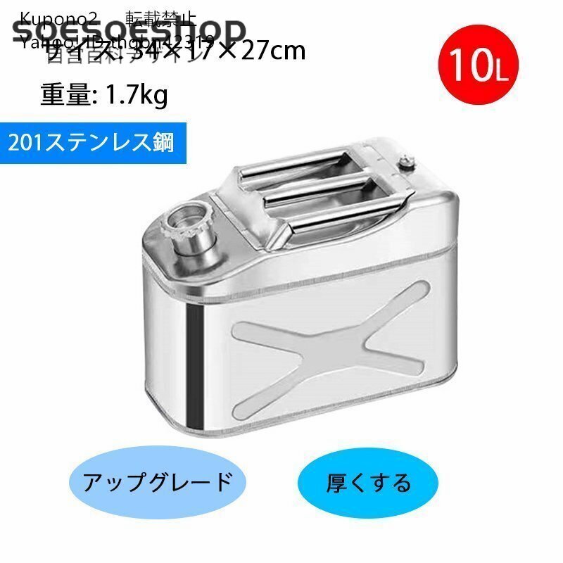 - 最新型SUS201 ガソリン携行缶 灯油タンク ポータブル燃料タンク 軽量耐久 ステンレス 防錆 防爆 持ち運び便利 10L 未使用