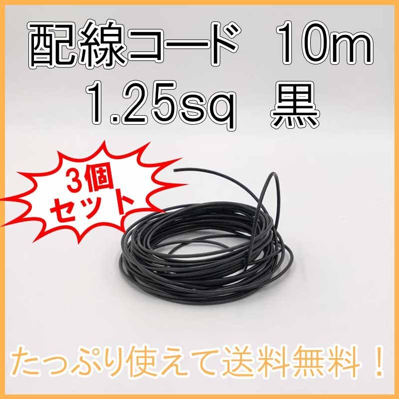 > 3個セット 1.25sq 黒 10m 自動車用配線コード AV オーディオ ナビ パーツ 電装 コネクタケーブル シングルコード 修理 電線 整備 DIY