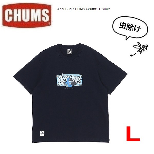 - CHUMS チャムス アンチバグ チャムスグラフィティTシャツ ネイビー L CH01-2507 メンズ 虫よけ加工 アウトドア キャンプ