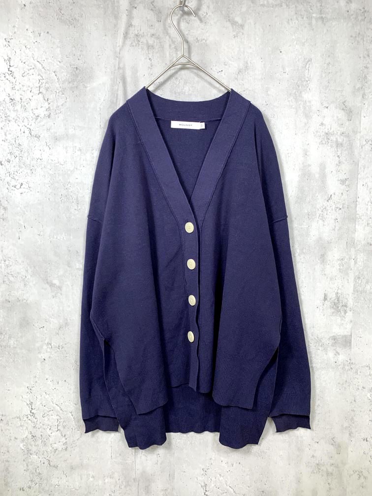 - ゆうパケットOK MOUSSY マウジー 010GSK70-0610 SLIT LOOSE KNIT カーディガン sizeF/紺 ■■