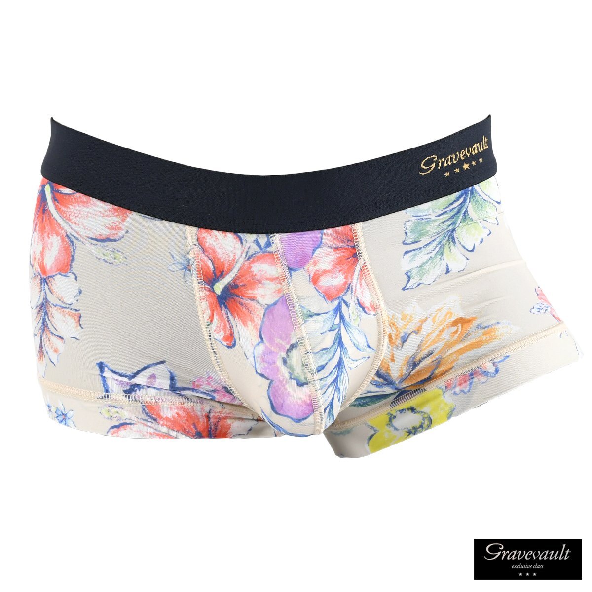 > 3052161-staupe Gravevault ボクサーパンツ ローライズ 花 アロハ柄 パンツ 日本製 アンダーウェア 下着 men メンズ(ライトベージュ) M