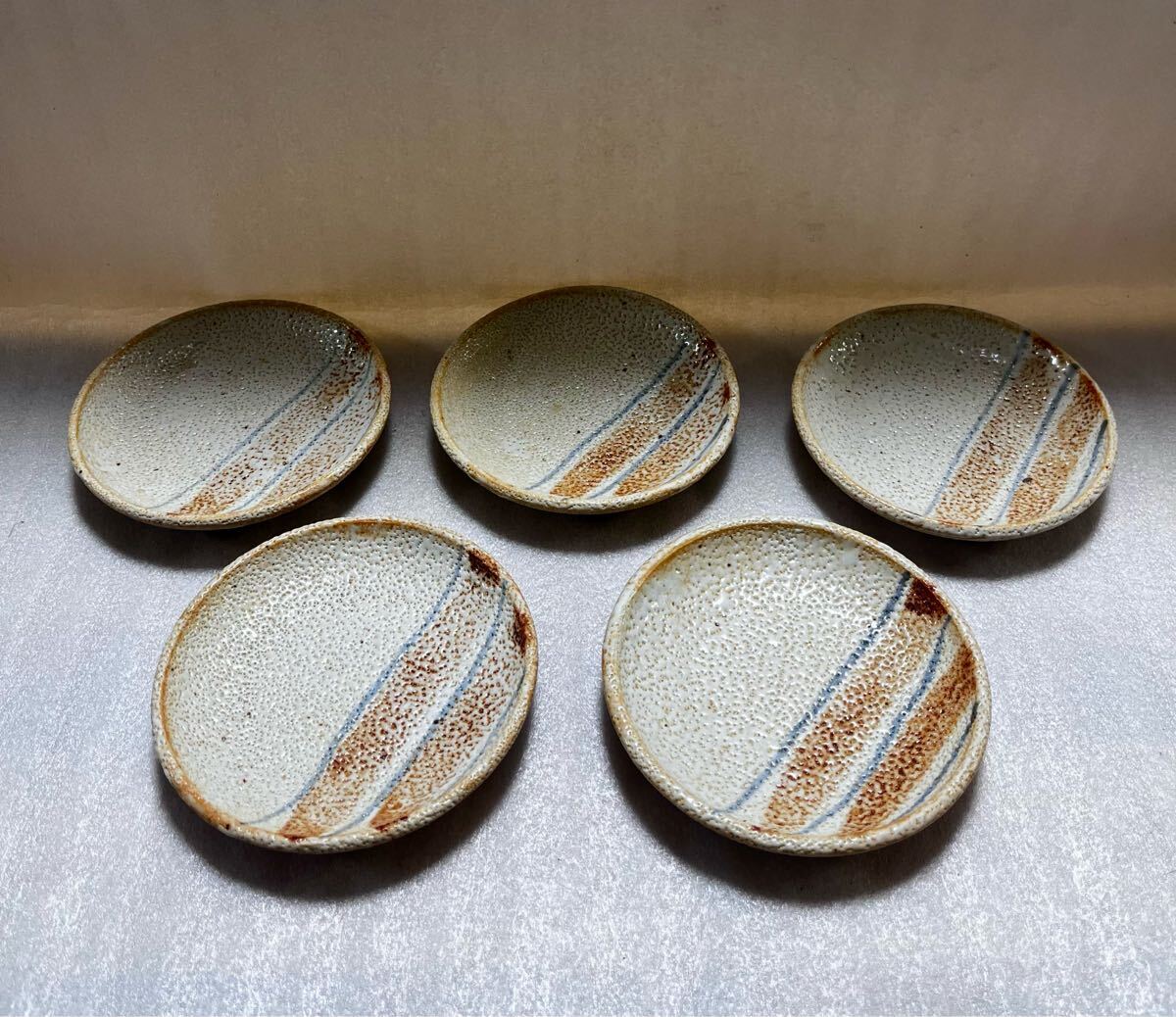> 未使用 新品 美濃焼 志野 丸皿 小皿 5客 料亭 懐石 和食器 お洒落 5枚 志野焼 ブルー
