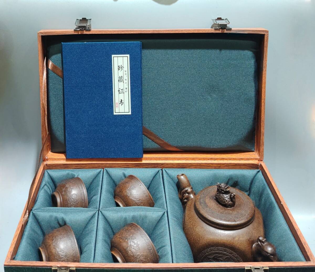 - 蔵友旧蔵出 紫砂壺 四大神獣套壺 顧景舟款 原礦古銅砂 箱付 茶道品 煎茶道具 文房賞物 希少珍品 中国古玩 中国古美術品