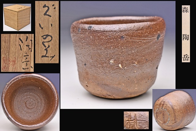 > 森陶岳 ★ ぐい呑 ★ 共箱 栞 ★酒器 ★ 石はぜ部漏れのため補修あり ★ 岡山県指定重要無形文化財 ★ 備前 ★ 人気陶芸家 ★