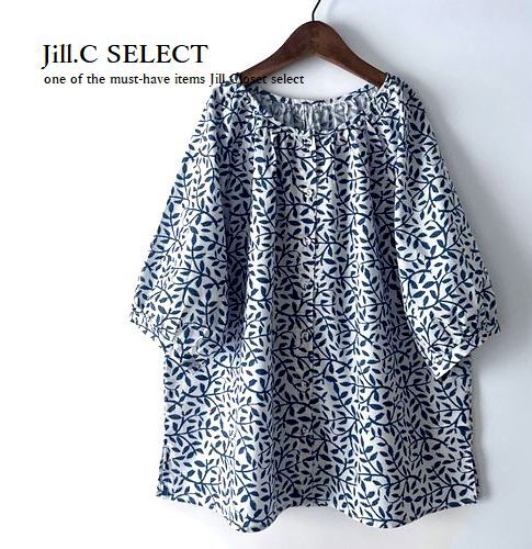 > 新品【送料185円】爽やかなボタニカルリーフpt*ふんわりラグランスリーブ*前開きボタンデザイン*シャツ ブラウス6037.NAVY