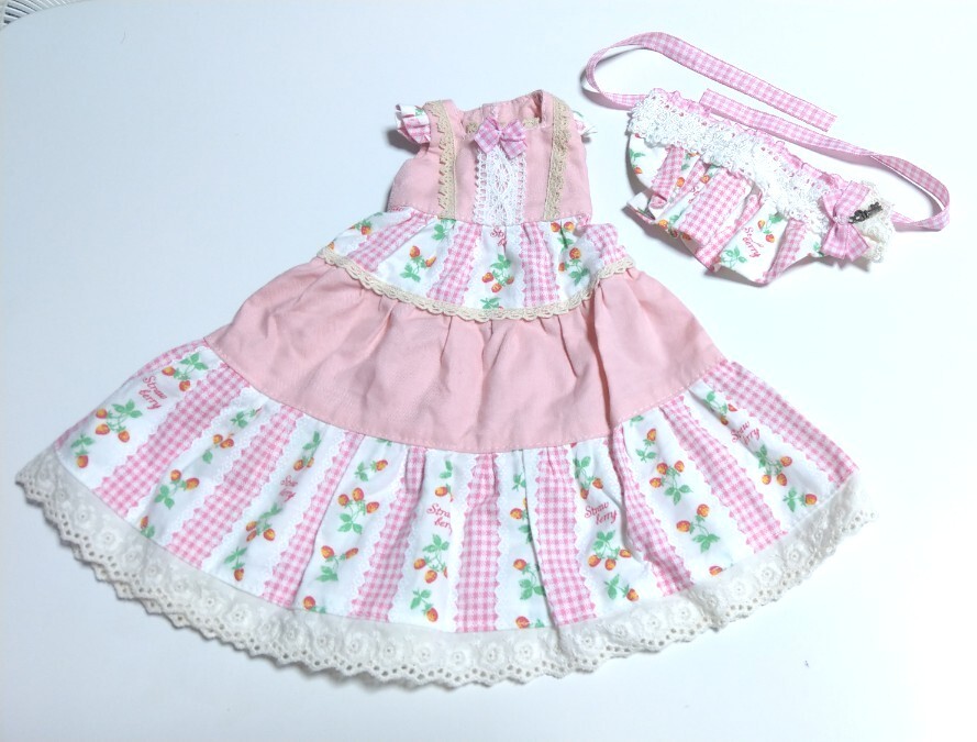 > SDM MSD等に 1/4サイズ ドール服 お洋服 アウトフィット 2way ワンピース 2点セット ピンク チェック カントリー