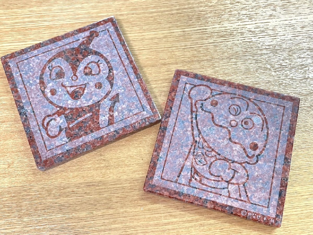 > ■ 展示 御影石 アートタイル 絵タイル プレート カレーパンマン ドキンちゃん 10×10㎝ 2枚 茶タイプ ★a