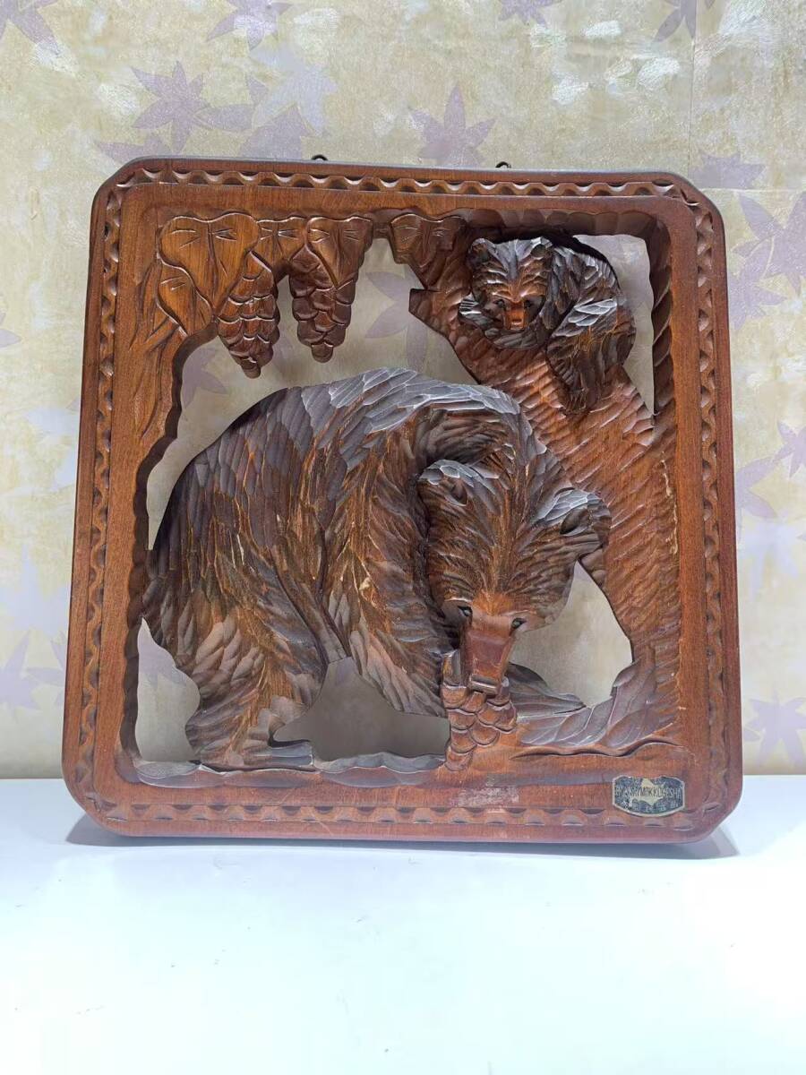 - 中古 木彫の熊 レリーフ 木彫熊 親子 昭和レトロ 北海道