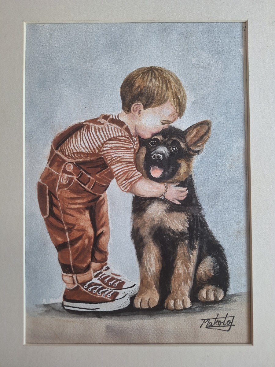 - 水彩画 Boy & German Shepherd