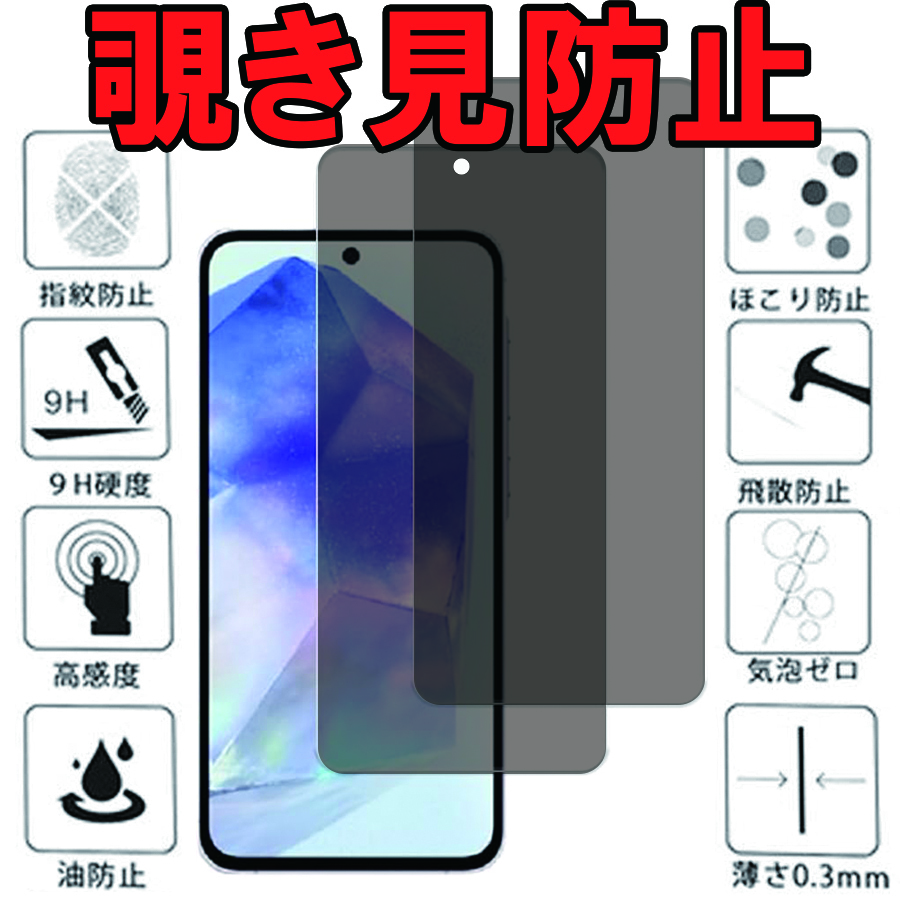 > 2枚入り 覗き見防止 Galaxy A55 5G ガラス フィルム 画面 保護 SC-53E SCG27 ギャラクシー カバー シール シート Glass Film 頑丈 9H