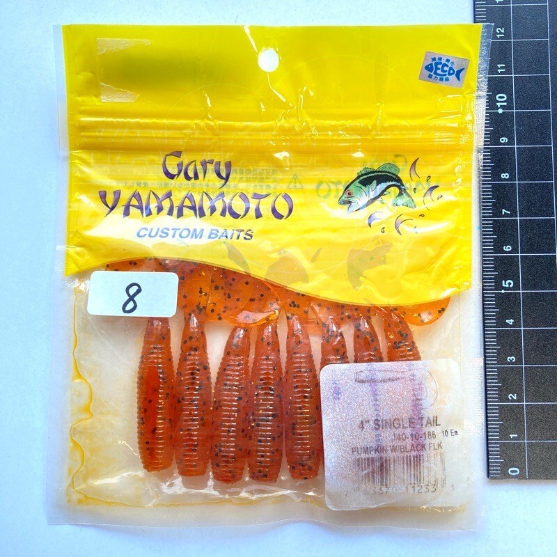 > 813788 ゲーリーヤマモト 4インチ シングルテールグラブ 8本 GARY YAMAMOTO #186 パンプキン/ブラックフレーク