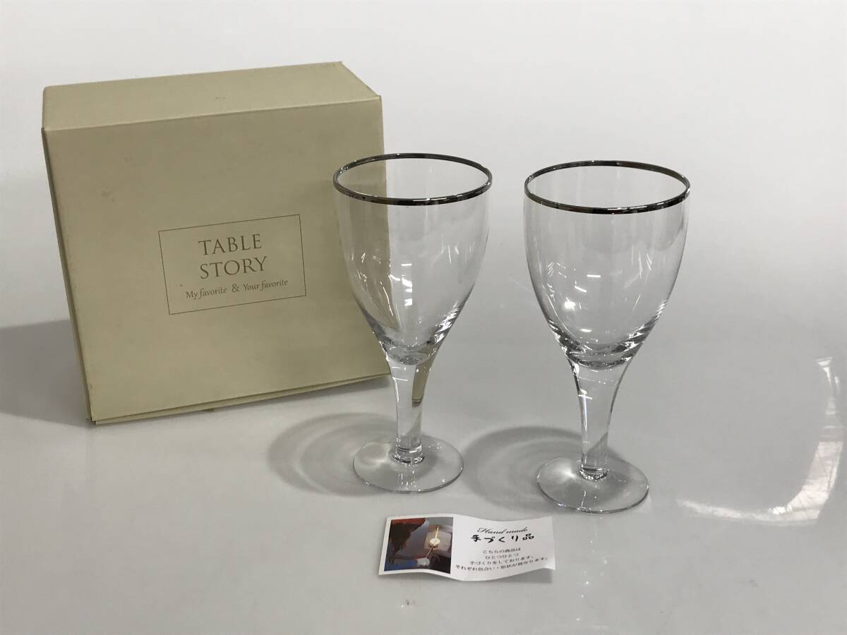- DG8413 TABLE STORY テーブルストーリー ペアグラス ワイングラス 縁シルバー 手作り 箱あり
