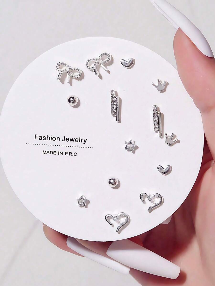 - ジュエリー レディース イヤーアクセサリー セット 7組 星、月、花、葉、ハート、パール装飾 週替わりピアスセット レディース用