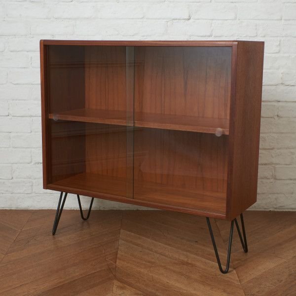 - IZ89115F★G-PLAN ヴィンテージ ガラス ブックケース チーク 本棚 ガラスケース 飾り棚 イギリス ビンテージ ジープラン 鉄脚 カスタム