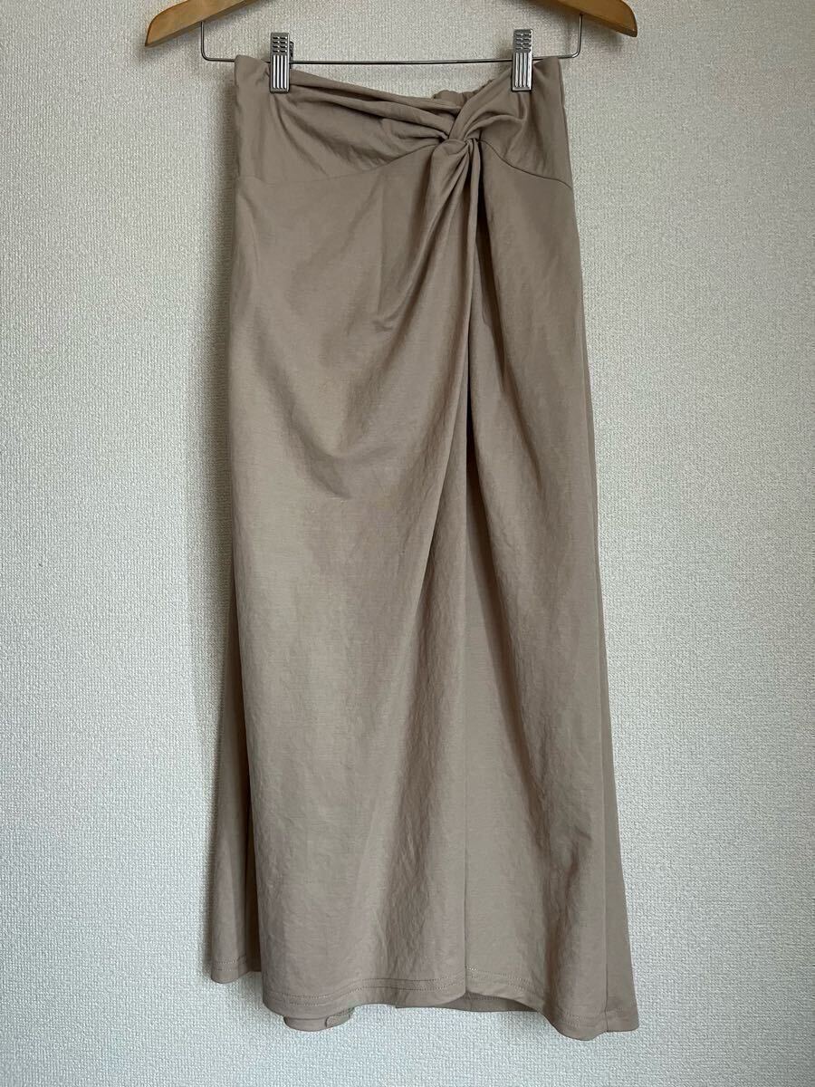 > GU ジーユー ノットナロースカート ベージュ Sサイズ ロングスカート スリット ツイスト ねじりデザイン リボン付きスカーレット