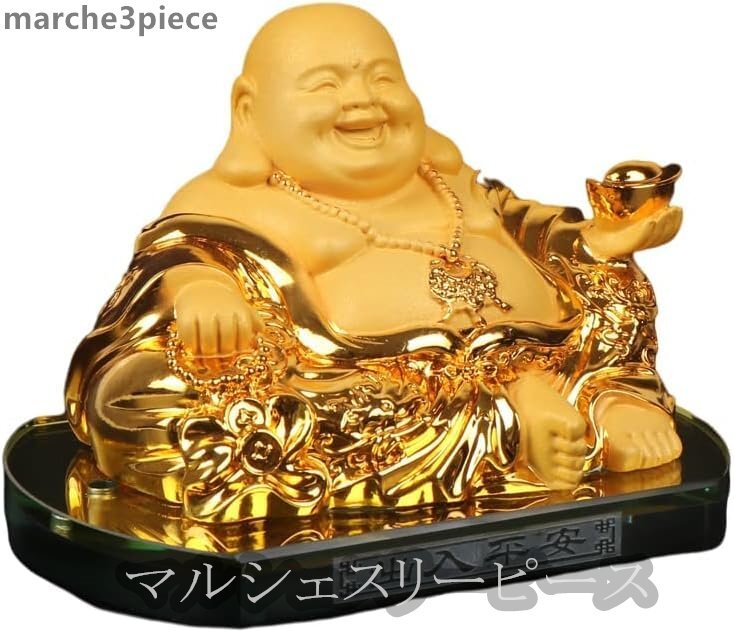 - 仏像 七福神 布袋様 布袋 置物 ゴールド 布袋さん 置物 厄除け 金運 開運 風水グッズ 玄関 インテリア 縁起物 新年 贈り物 自動車の装飾品