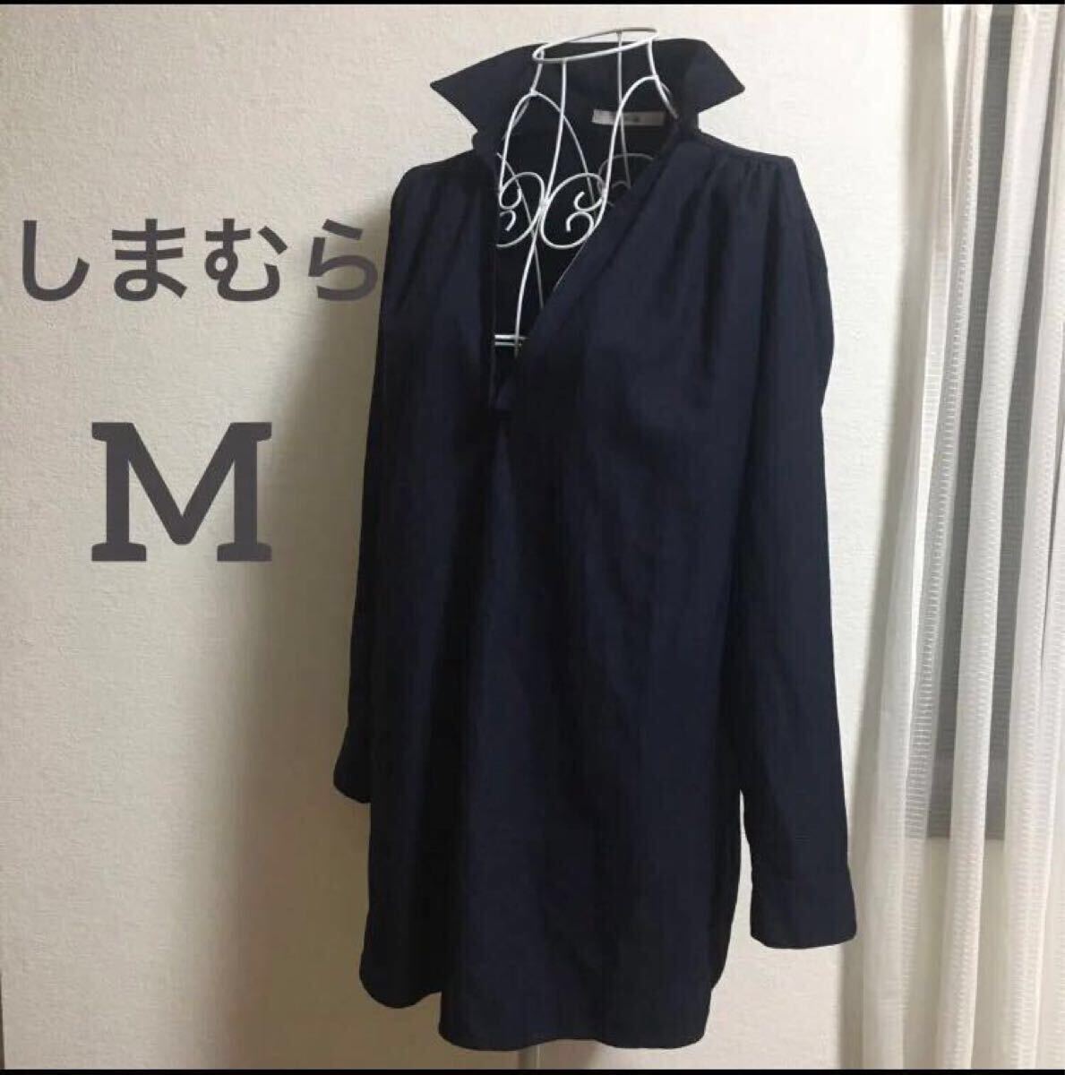 - しまむら スキッパーシフォンブラウス チュニック紺M