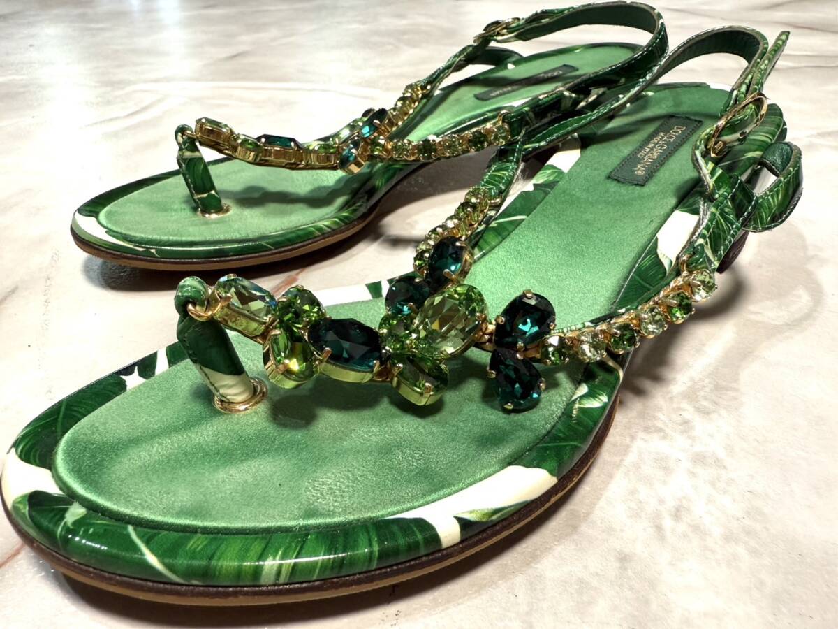 > 超高級キラキラ仕様】ドルチェ&ガッバーナ グリーン ビジュー 装飾 スワロフスキー クリスタル ラインストーン サンダル パンプス シューズ