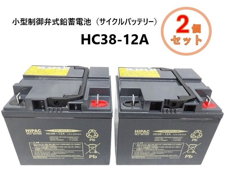 - エナジーウィズ 小型制御弁式鉛蓄電池(サイクルバッテリー) HC38-12A スズキセニアカー用 シニアカー 【2個セット】