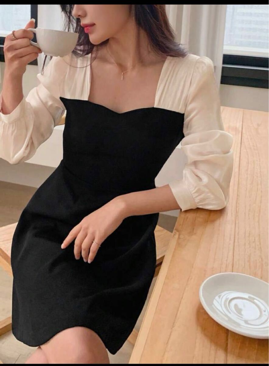 - ☆DAZY ☆新品 カラーブロック スクエアネック ミニドレス エレガント SHEIN 春夏 ブラック