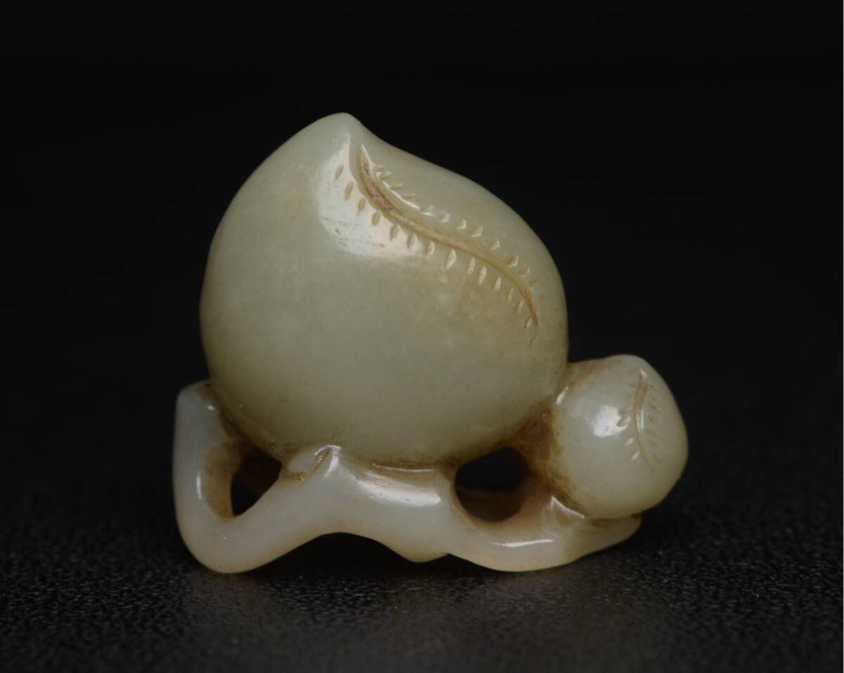 - 『館蔵珍品 和田玉製 細密彫 寿桃 置物 賞物』稀少珍蔵品 古賞物 貴重物品 収蔵品 中国古美術 時代物 古董品
