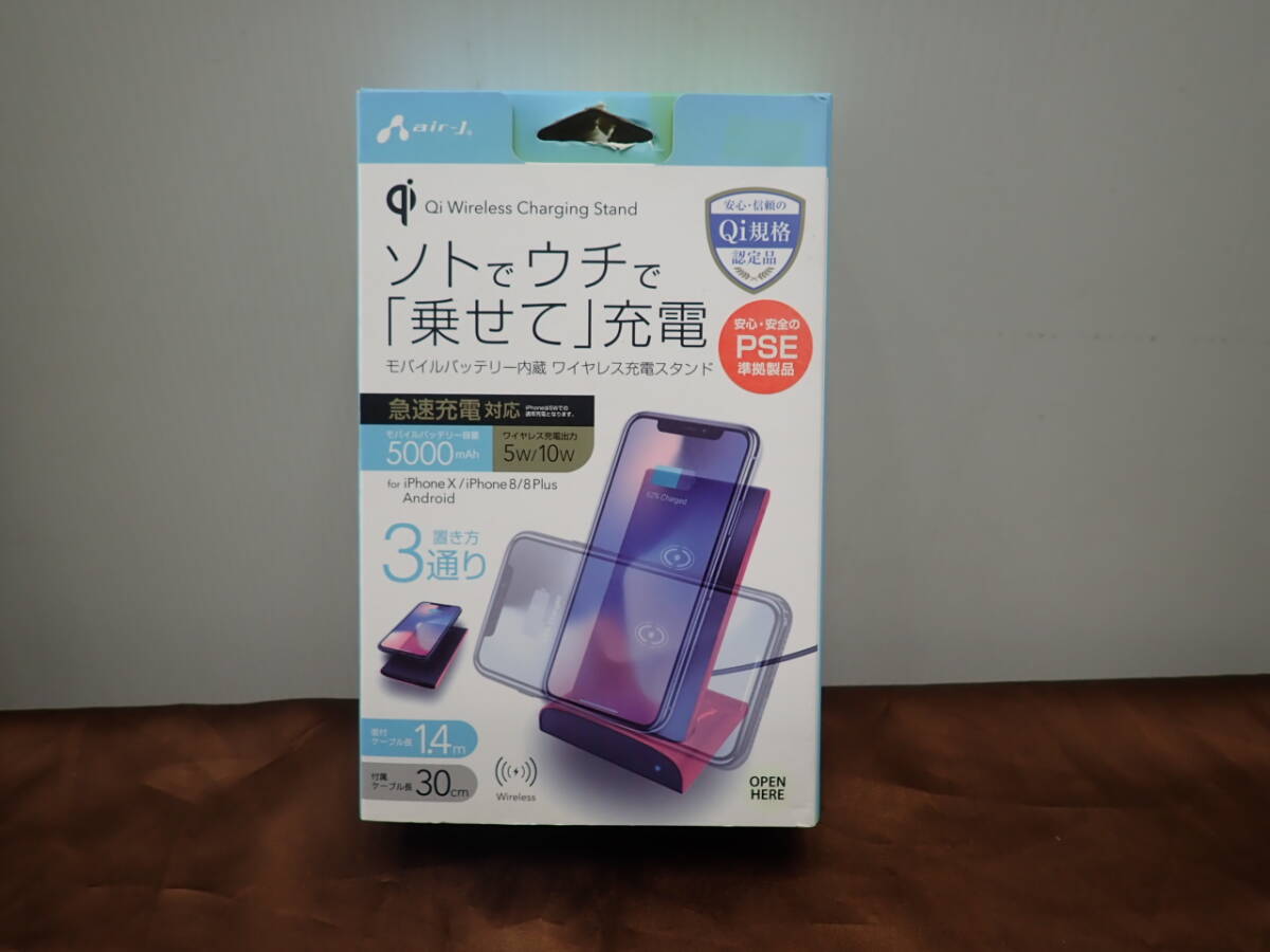 - ①【未使用品】エアージェイ AIR-J Qi規格 5000mAh モバイルバッテリー内蔵 ワイヤレス充電スタンド 新PSE対応モデル オレンジ AWJ-MB10 OR