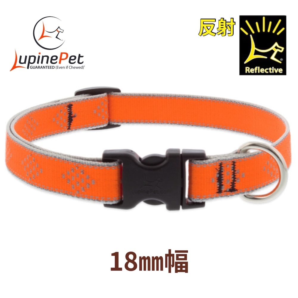 - ワンタッチ首輪・Mサイズ・18mm幅 リフレクティブ・反射・オレンジダイヤモンド柄 33-56cm LUPINEルパイン アメリカ製 軽量丈夫