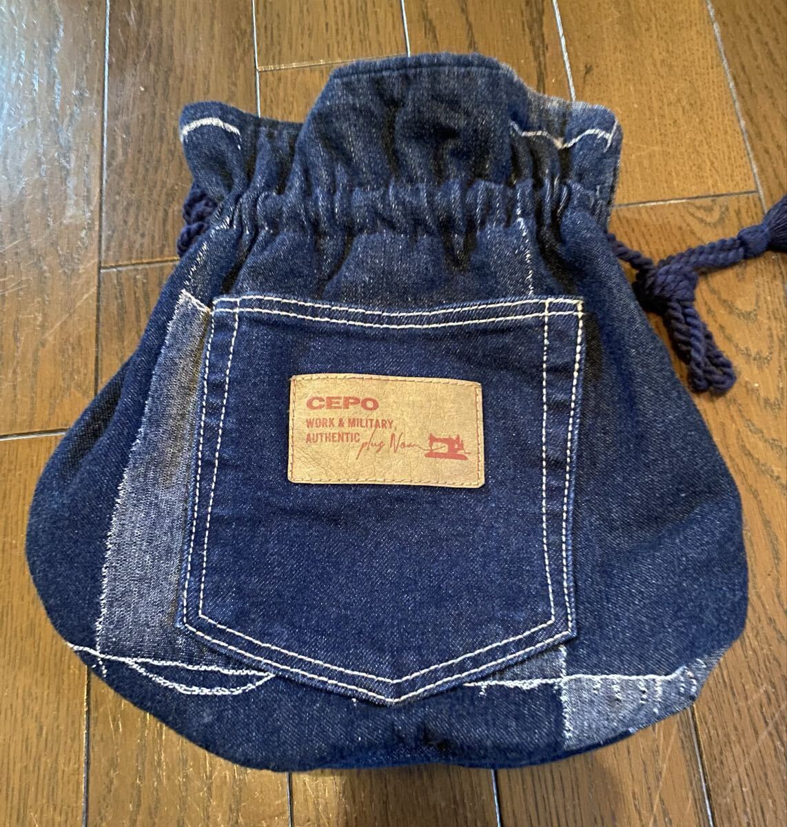 - cepoデニムジーンズバッグ巾着袋ウエストバッグカバンポーチポシェットパッチワークインディゴvintageワークボディショルダーリュック