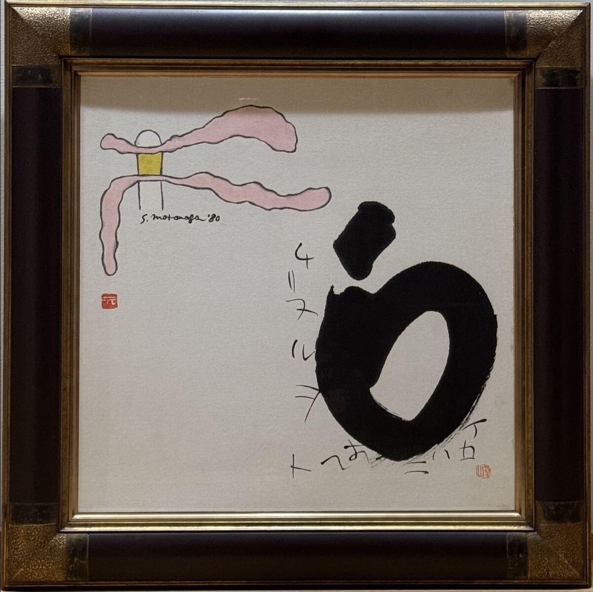 - 元永定正 榊莫山 共作 【真作】 大判色紙画「イロハニホヘトチリヌルヲ」 水彩画 書 8号 1980年 具体美術協会(検索:白髪一雄 吉原治良)