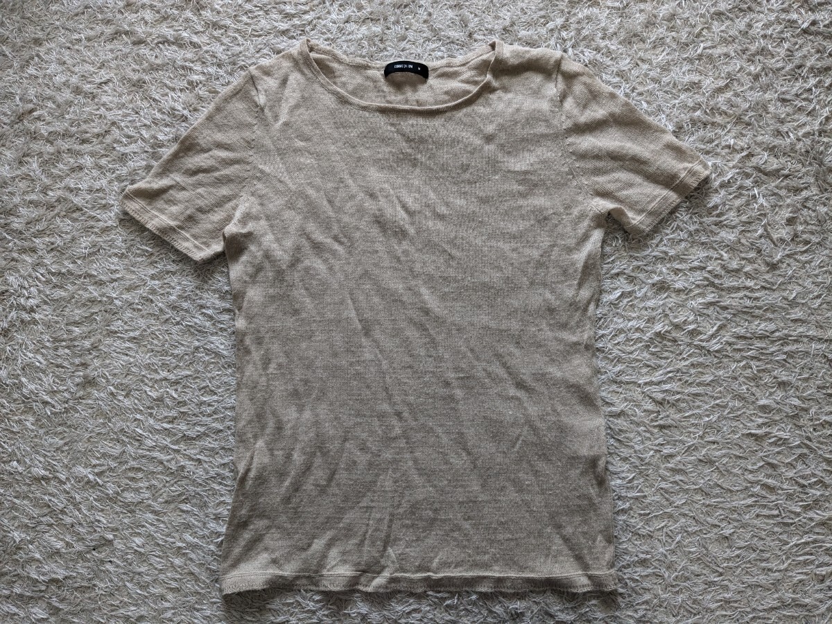- コムサイズム COMME CA ISM 半袖 カットソー 上品ベージュ アースカラー 涼しげ麻100% 透け感 おしゃれに重ね着で爽やか sizeM