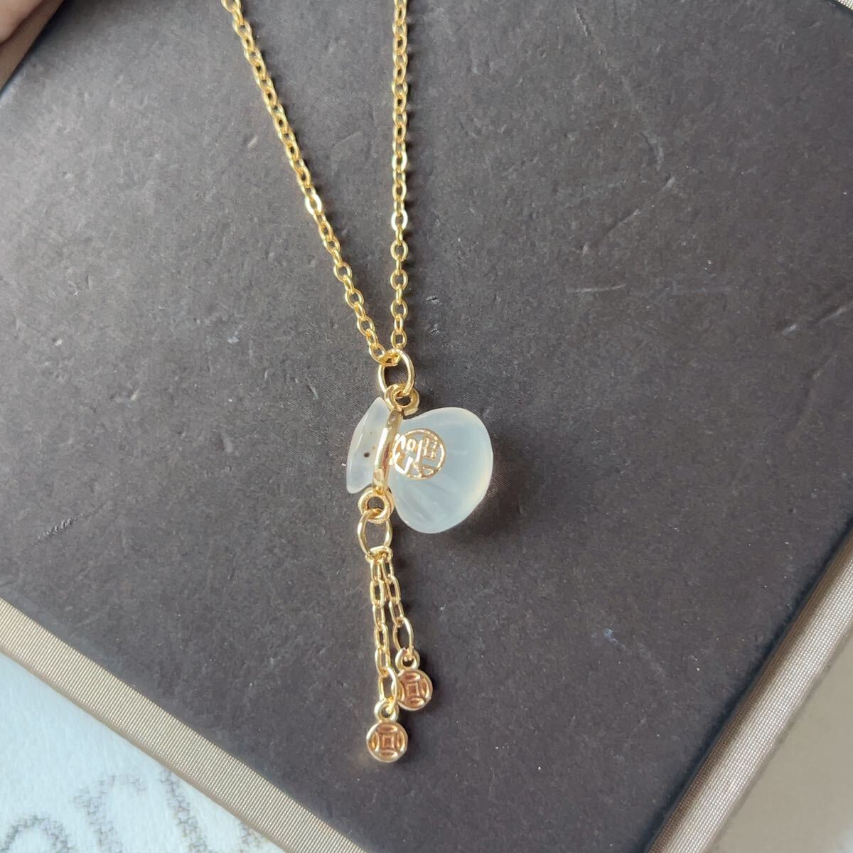 > ◇白瑪瑙◇メノウ◇アゲート◇ネックレス◇ペンダント◇金袋彫刻◇縁起物◇ 金運アップ◇天然石◇パワーストーン◇プレゼントにも039P72714