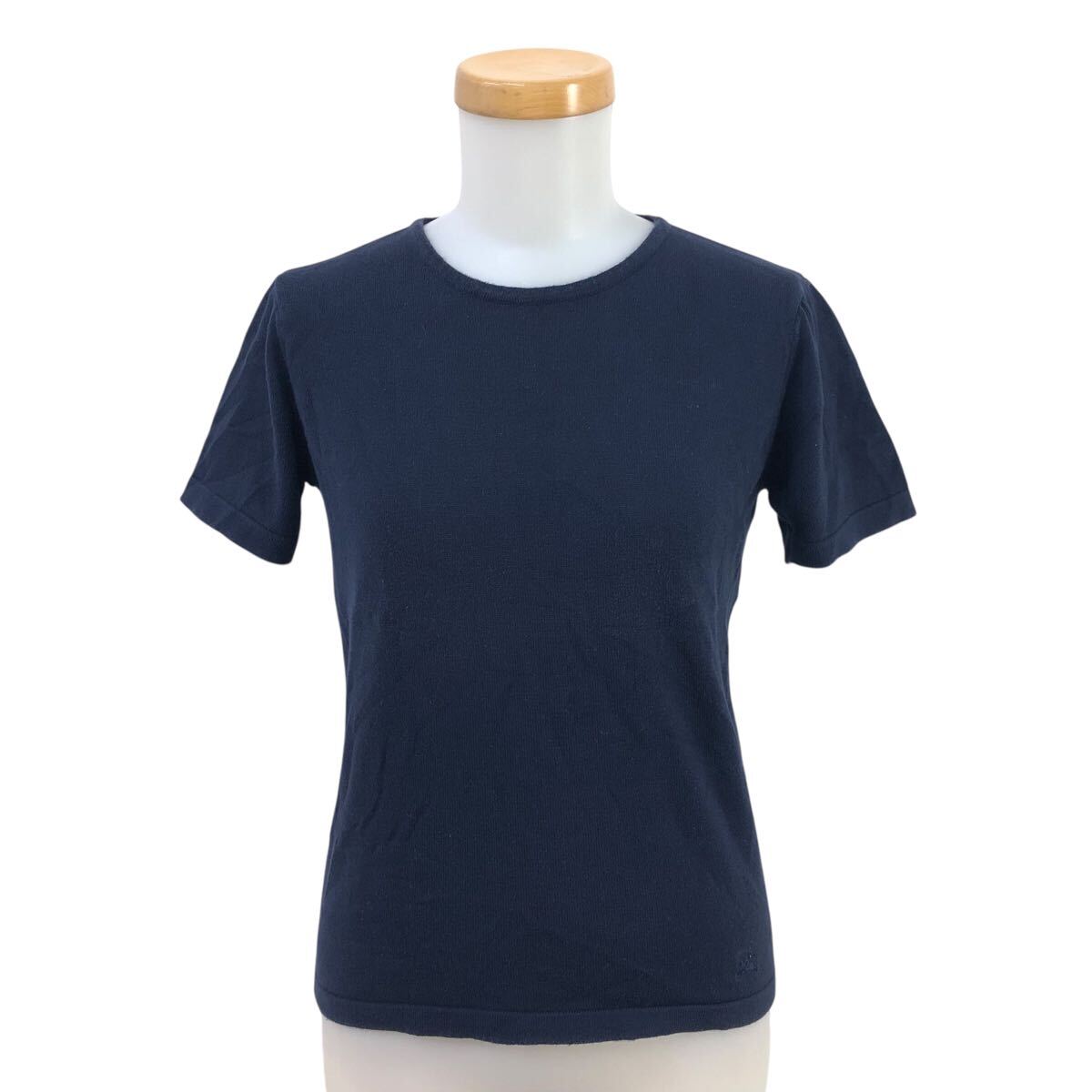 > Nm314-31 BURBERRY LONDON バーバリー ロンドン 半袖 コットン ニット セーター トップス ネイビー 紺 レディース 38