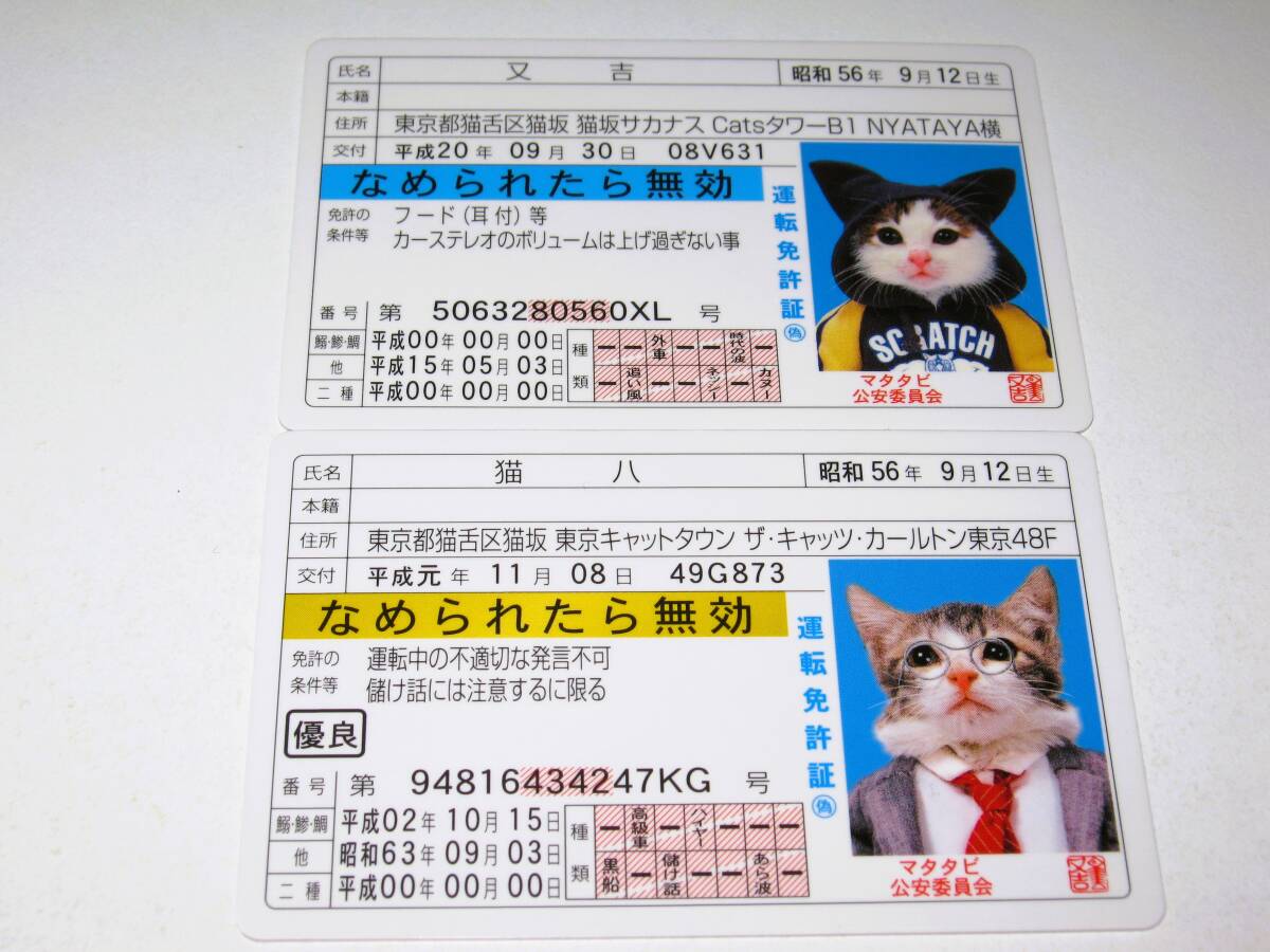 - 【なめ猫 免許証風 ブロマイド 2枚 】なめんなよ猫 なめねこ 癒やし 猫 ネコ かわいい 可愛い キャラクター コレクション コスプレ トレカ