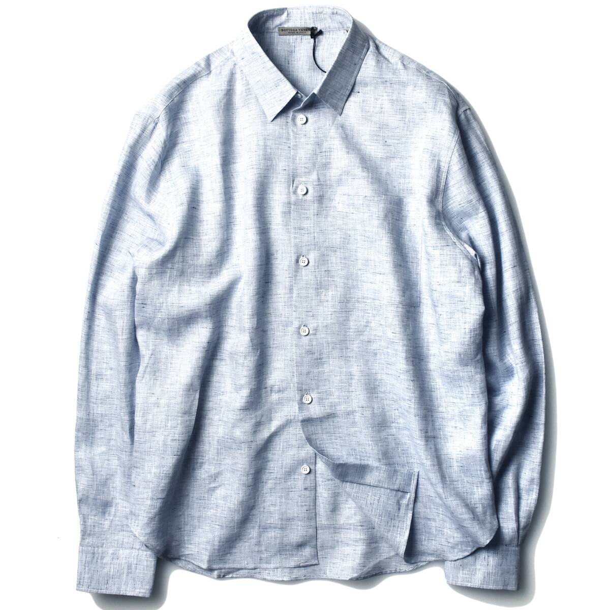 > 17万【ボッテガヴェネタ 新品】最高級リネン100%◇白より涼し気!氷菓のような清涼ブルー◇バサッと羽織ってサマになるアウターリネンシャツ