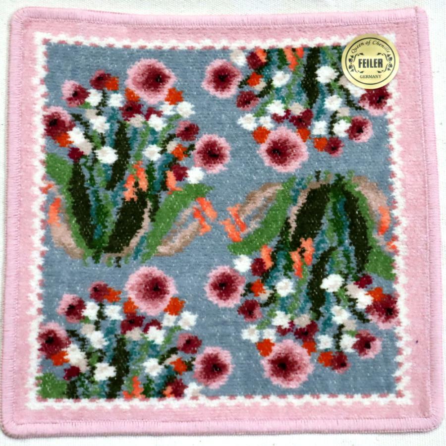 - ★新品★ フェイラーハンカチ 定価2,750円 ポンポネット 25cm×25cm グレー/ピンク